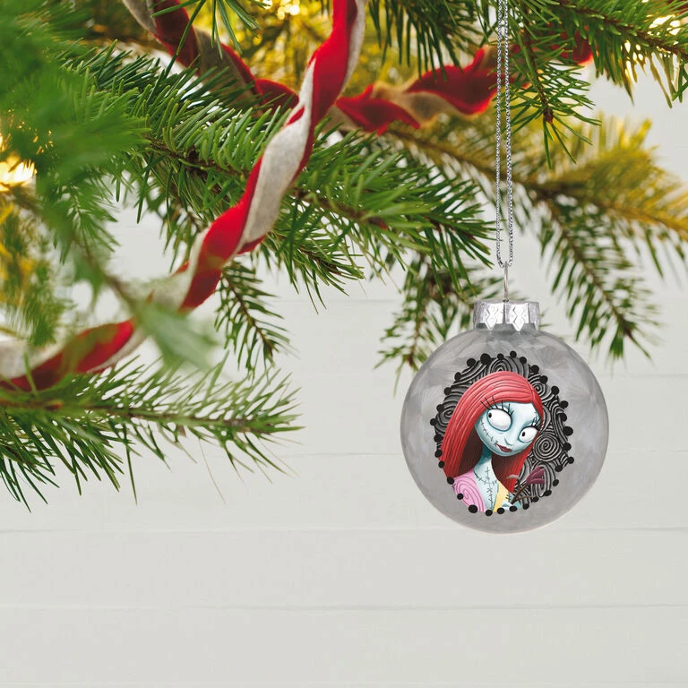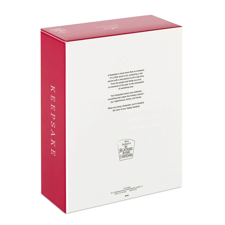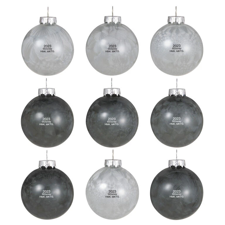 Spread the spirit of Halloween Town to your tree with this set of nine Christmas tree ornaments. A combination of silver and black blown glass ornaments each feature a favorite character from “The Nightmare Before Christmas”: Jack Skellington dressed as Sandy Claws, Sally, Zero, Oogie Boogie, Scary Teddy, Undead Duck, Lock, Shock and Barrel.