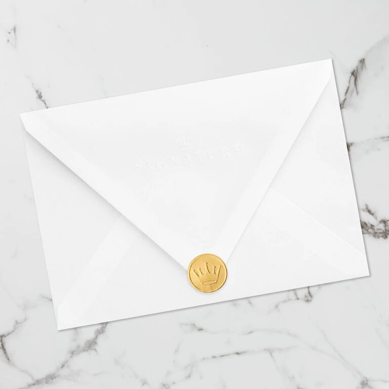 - Includes one card and one envelope with a Gold Crown seal. Envelope color may vary.