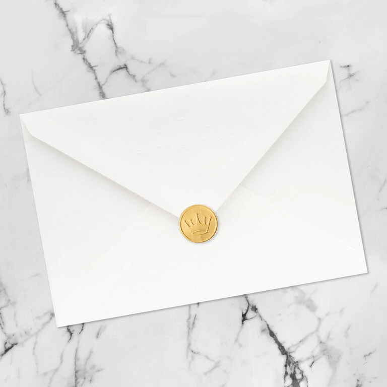 - Includes one card and one lined envelope with a Gold Crown seal. Envelope color may vary.