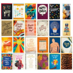 Hallmark Assorted Mahogany All-Occasion Greeting Cards In Green Watercolor Organizer, Box Of 24